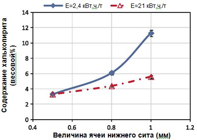 удельной энергии целевые минералы при электрическом измельчении выделяются