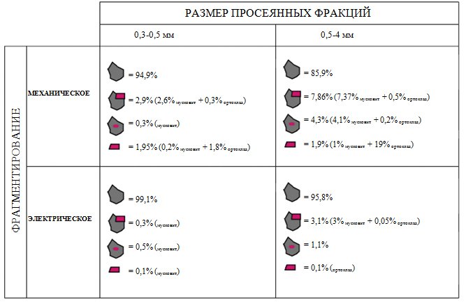 динамику и эффекты электрического фрагментирования разных типов руды, когда