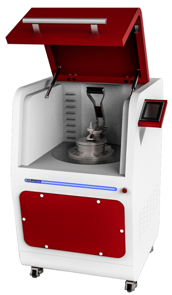 Вибрационная дисковая мельница измельчает при помощи сил удара и трения. Размольная гарнитура надёжно закрепляется к вибрационной плите при помощи быстрозажимного крепления. Вибрационная плита осуществляет циркуляционные движения в горизонтальной плоскости. Центробежное ускорение, действующее на размольные кольца в чаше, приводит к возникновению особенно мощных сил давления, удара и трения, которые измельчают вещество до аналитической тонкости за одну – три минуты.